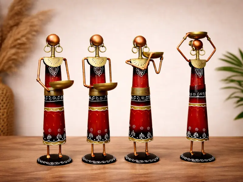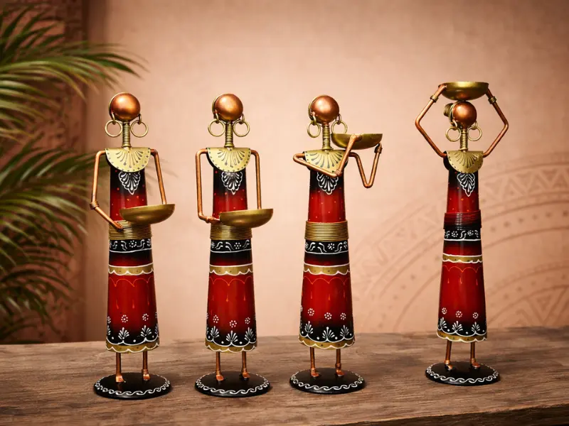 Handcrafted Tribal Metal Lady Figurines Set of 4 – Ethnic Home Decor Showpiece