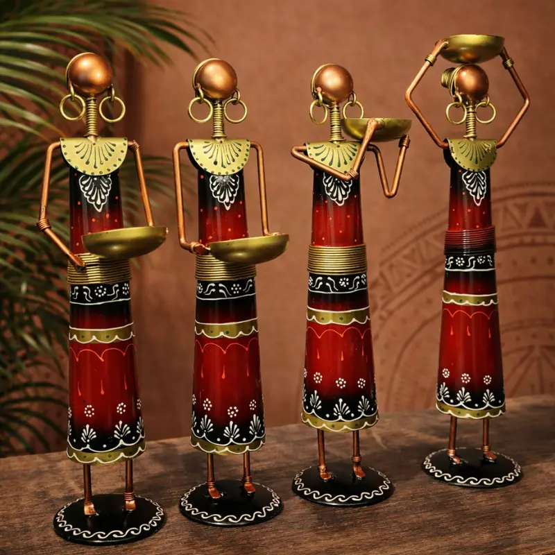 Handcrafted Tribal Metal Lady Figurines Set of 4 – Product Key Features