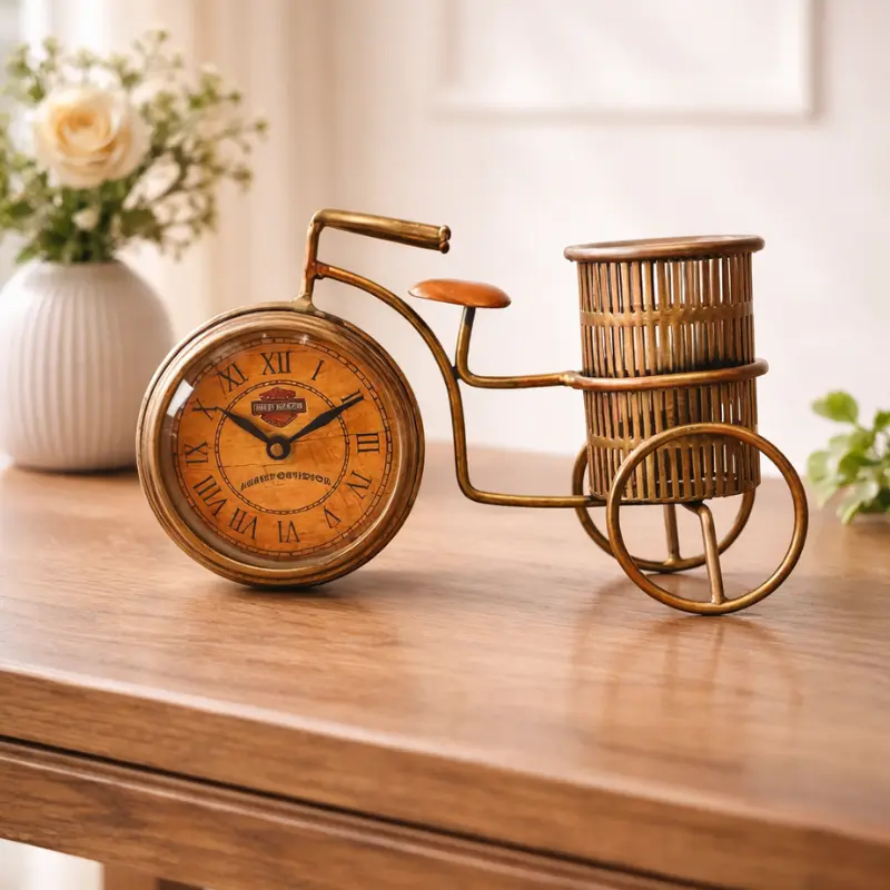 Unique Bicycle Design – Vintage cycle-inspired pen holder with an attached clock, jo aapke desk ko ek classy aur artistic look deta hai.
