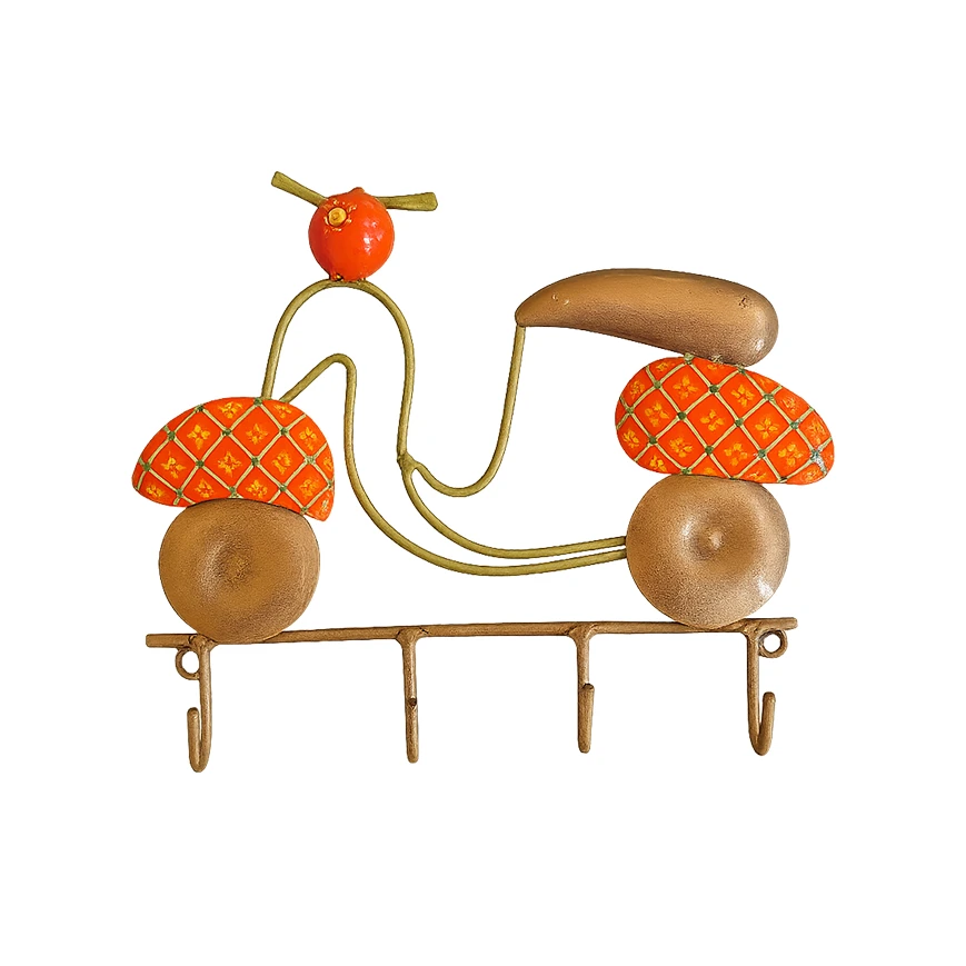 Introducing our Handicraft Antique Iron Scooter Shape Key Holder. Perfect for home, office, and living room wall décor, this unique handcrafted piece not only keeps your keys organized but also enhances your wall with a classic artistic look.