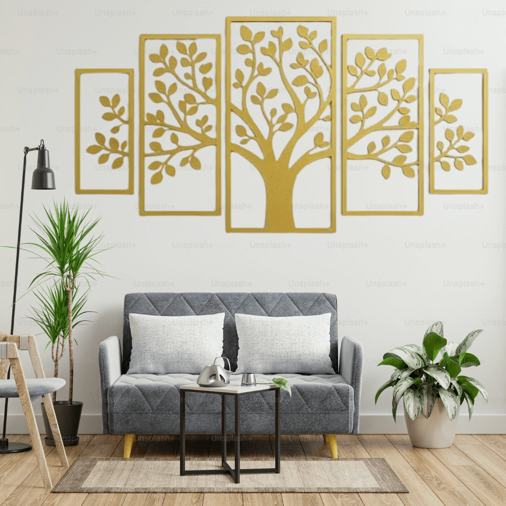 Best Home Decor Golden Metal Tree Wall Art – 5 Panel Design Wall Décor for Living Room, Bedroom & Office - Khareed Ke Dekho