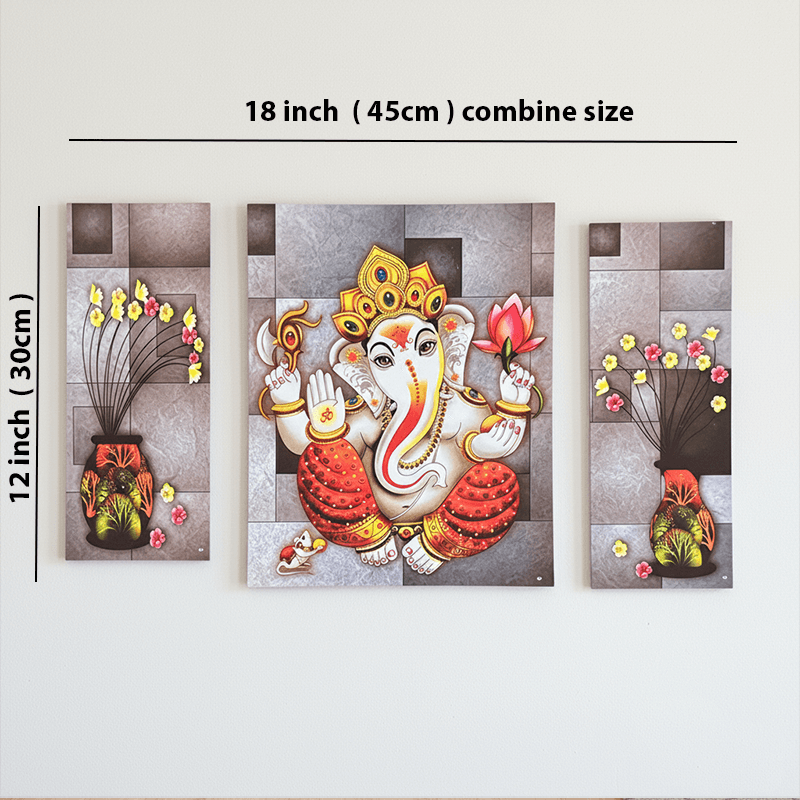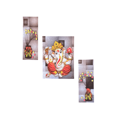 Ganesh Ji Wall Painting Set of 3 | Lord Ganesha Photo Frame for Home & Office Decor | Premium HD Print Wall Art Vases Design