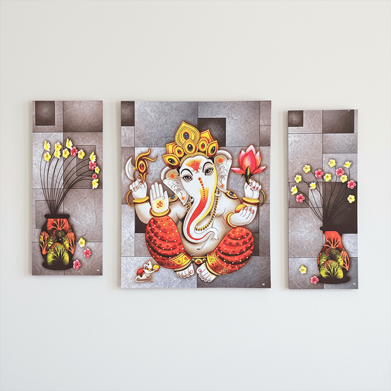 Ganesh Ji Wall Painting Set of 3 | Lord Ganesha Photo Frame for Home & Office Decor | Premium HD Print Wall Art Vases Design - Khareed Ke Dekho
