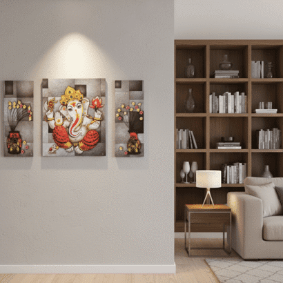 Be the first to review “Ganesh Ji Wall Painting Set of 3 | Lord Ganesha Photo Frame for Home & Office Decor | Premium HD Print Wall Art Vases Design”