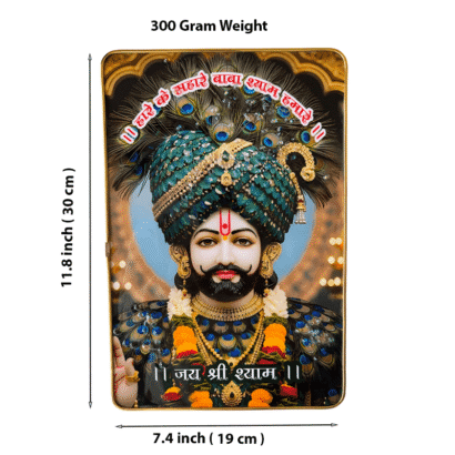 This Khatu Shyam Ji Wall Photo Frame is a wonderful choice to bring divinity and positive energy into your home or temple. This frame depicts Shyam Baba’s divine form adorned with a magnificent Peacock Crown Design and beautiful ornaments, adding a spiritual touch to any space.