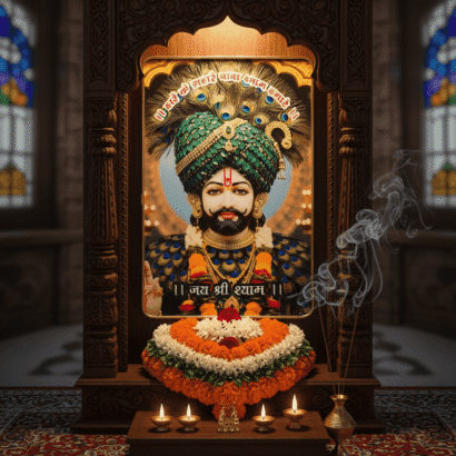 Khatu Shyam Ji Wall Photo Frame | Shyam Baba HD Picture Frame for Home & Temple | Peacock Crown Design Spiritual Wall Decor | Devotional Photo Frame