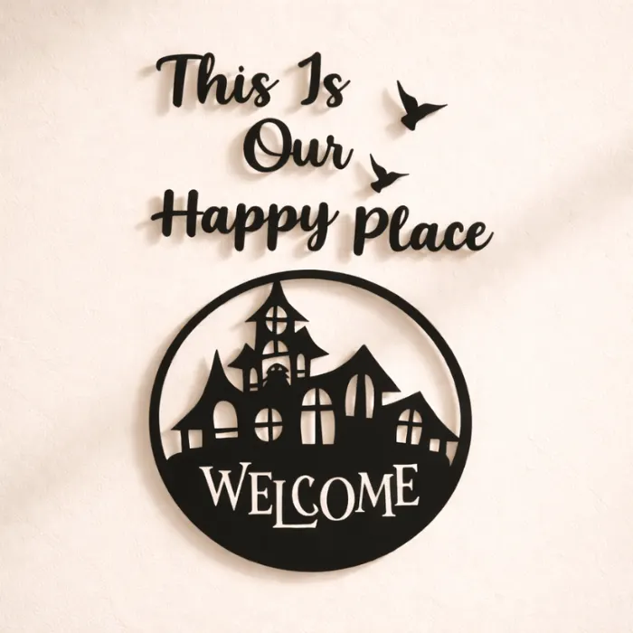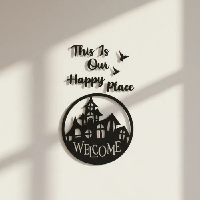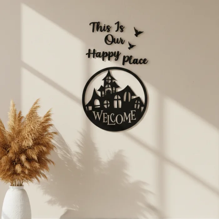 Create a welcoming and heartwarming atmosphere in your home with the beautifully designed This Is Our Happy Place Wall Decor. This elegant wall art features stylish typography combined with a charming welcome house silhouette, making it a perfect addition to modern interiors.